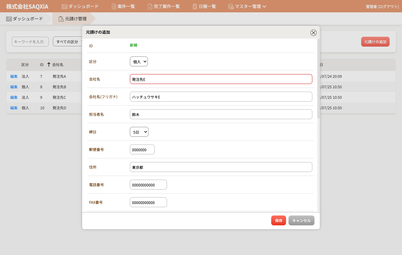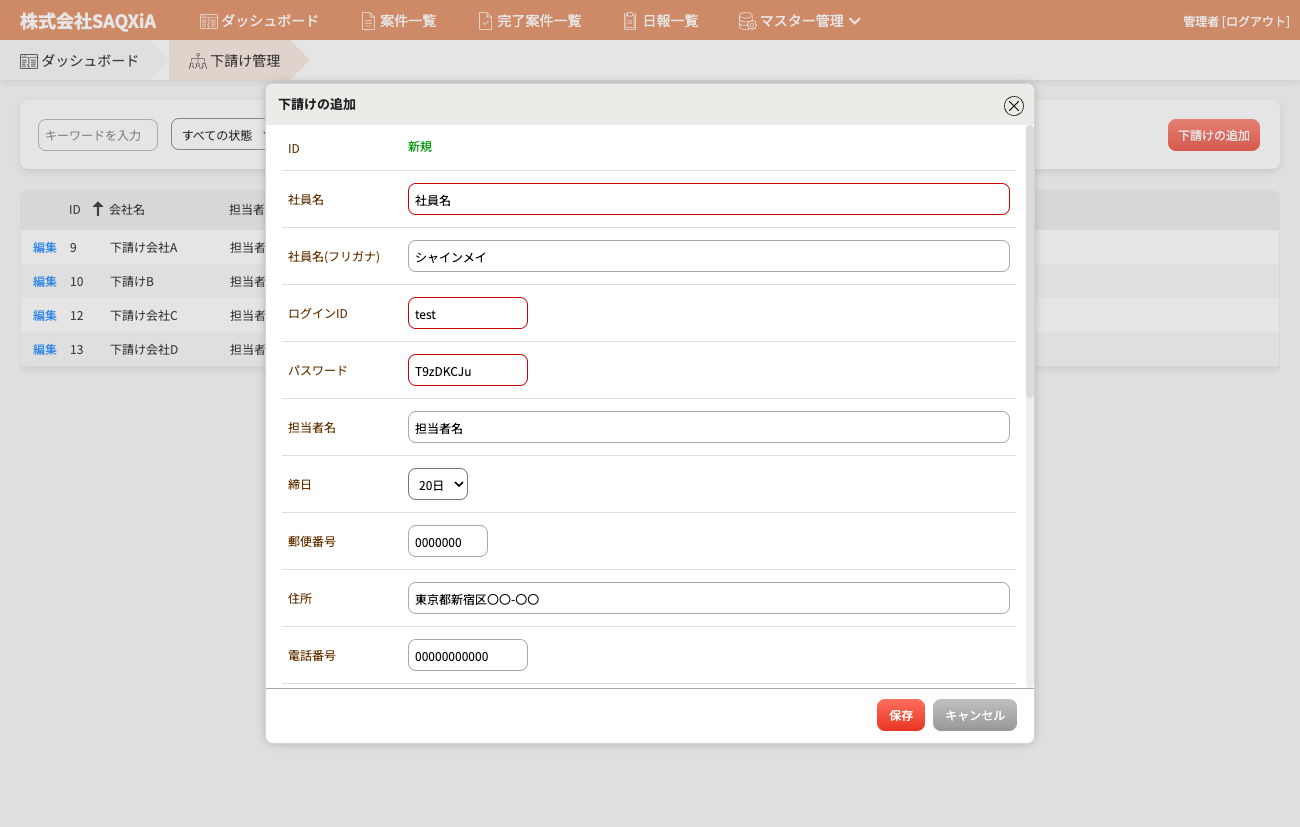 案件期日の1週間前に、担当者へ自動でリマインドメールを送信。さらに、案件に協力会社を登録すれば関係者にも自動で通知が送られるため、連絡漏れを防ぎ、スムーズな進行管理が実現します。